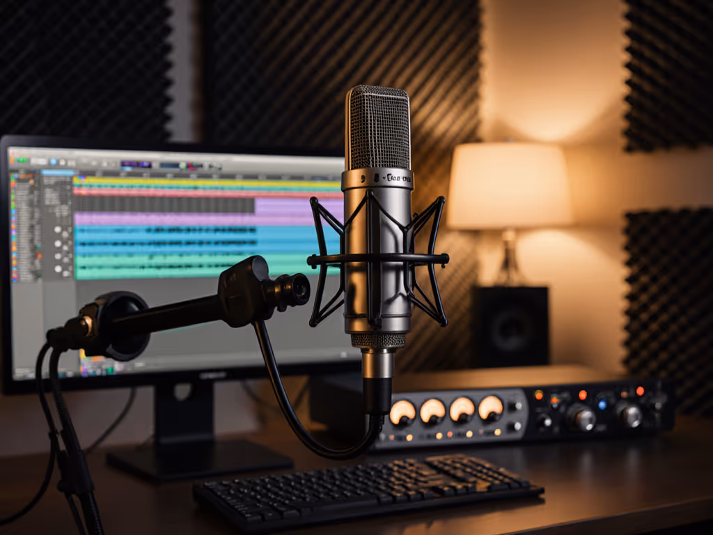 XLR mic selection, interface pairing, preamp headroom, multi-host panels, sponsor-read polish without heavy post.