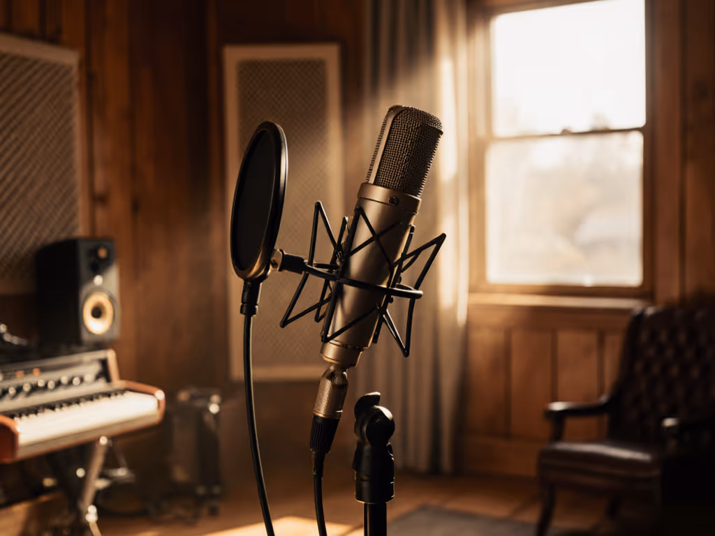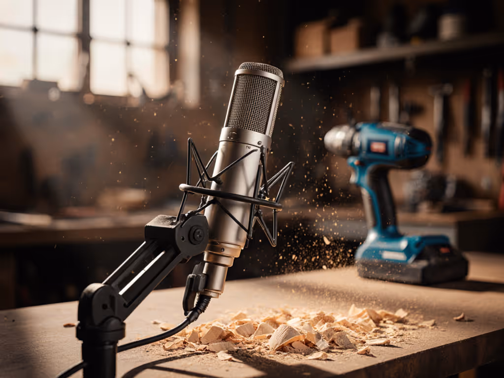 Mic ergonomics, desk resonance control, shock/handling noise mitigation, plosive control, off-axis technique in small rooms.