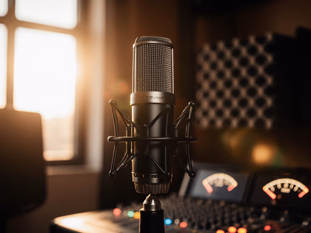XLR mic selection, interface pairing, preamp headroom, multi-host panels, sponsor-read polish without heavy post.